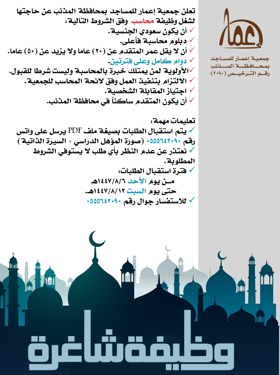 تعلن جمعية إعمار عن شاغر وظيفي ( محاسب )